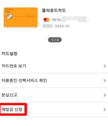 재발급 신청을 한 카드는