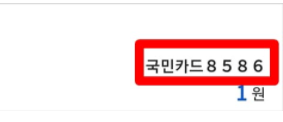 카드에 등록된 국민은행 계좌로 1원이 송금됩니다.