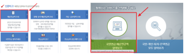 사진과 같이 국민연금 홈페이지에서 본인인증 후,