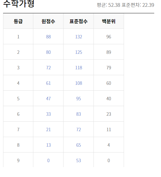 이번 모의고사의 등급컷을 알아보도록 하겠습니다.