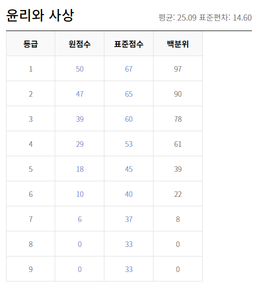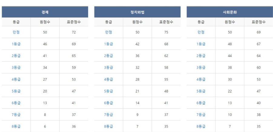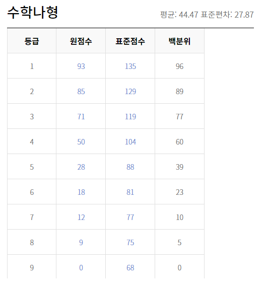 이번 모의고사의 등급컷을 알아보도록 하겠습니다.