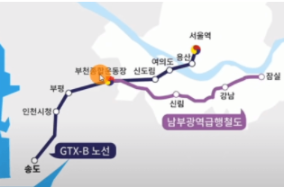 GTX B노선은 송도에서 시작해 여의도를 지나 서울역,청량리,마석까지