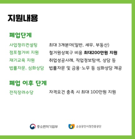 폐업시 발생하는 철거 및 원상복구 비용을 지원받을 수 있으며