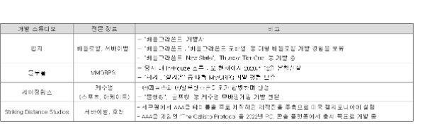 크래프톤의 개발 스튜디오는 다음과 같습니다.