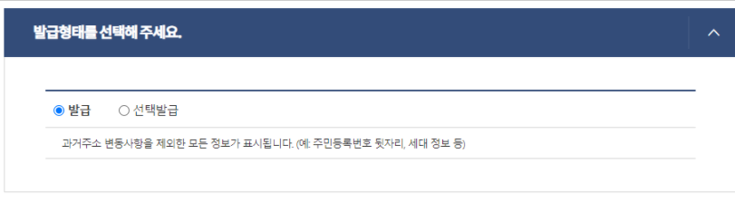(표시/선택 발급)을 선택하신 후 수령방법을