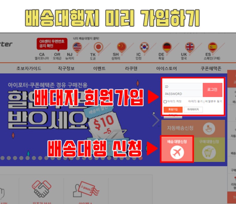 배송대행지 사이트 가입입니다.
