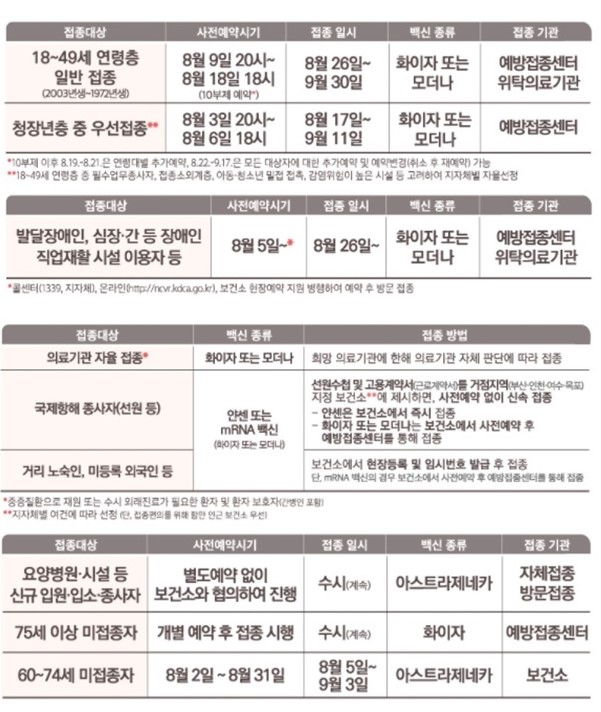 코로나19 접종 8~9월 시행계획을 정식 발표했습니다.