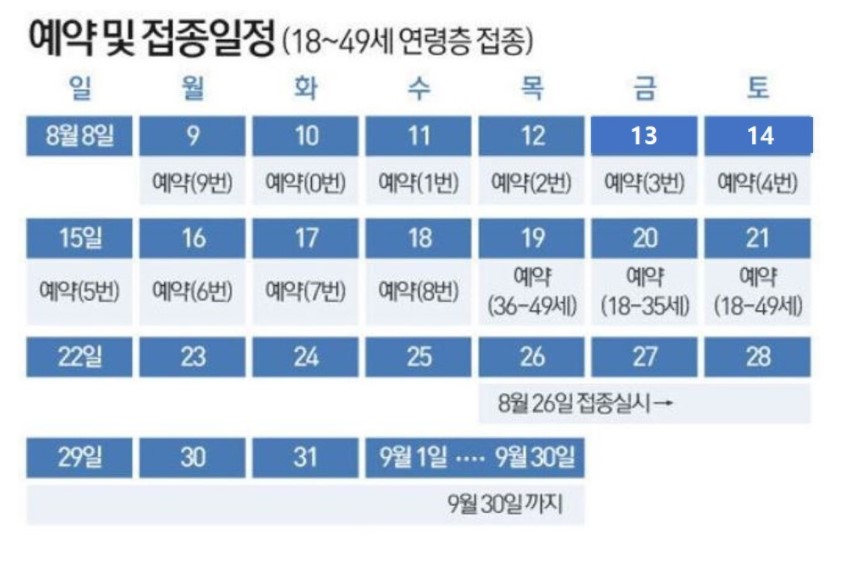 8월 9일부터 백신 접종데 대한 사전예약을