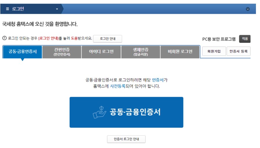 공동금융인증서로 많이 로그인을 하고 있습니다.
