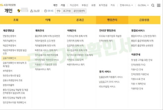 국민은행을 통해서 금융거래확인서 인터넷 발급하는
