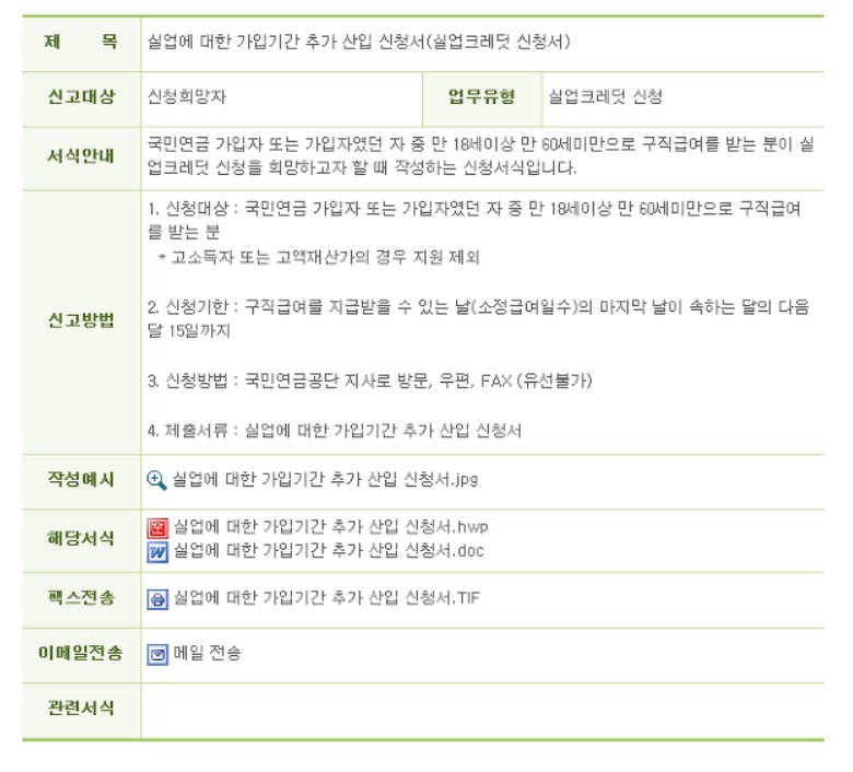 실업크레딧 가입신청서 양식과 서류가 필요하신 분들은