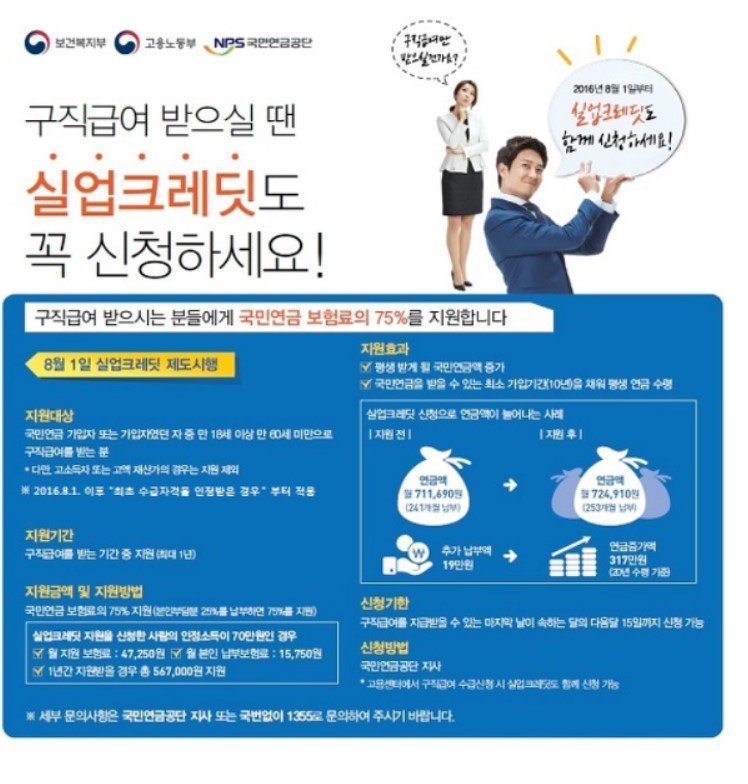 실업급여 크레딧을 꼭 신청해보시기 바랍니다.