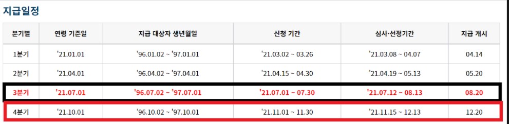 총 4번을 분기별로 25만원씩 지급을 하고 있다고 합니다.