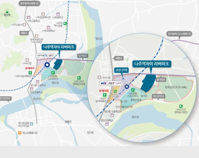 나주역 자이 리버파크에서 KTX나주역을 걸어서 이동이 가능하다고 하며