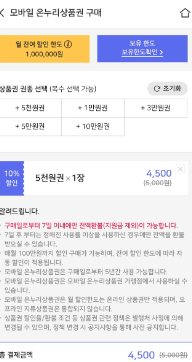 모바일 온누리상품권 등을 5~10% 할인받아 구매하고