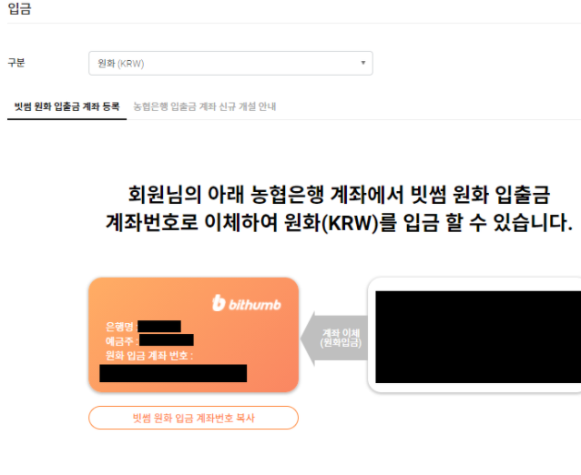 위에서 설명드렸던 것처럼 빗썸의 경우 농협 계좌만 등록이 가능하기