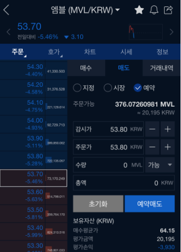 위 사진은 업비트 앱의 모바일 화면입니다.