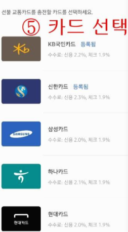 그리고 캐시비, 티머니 교통카드 중 하나를 선택합니다.