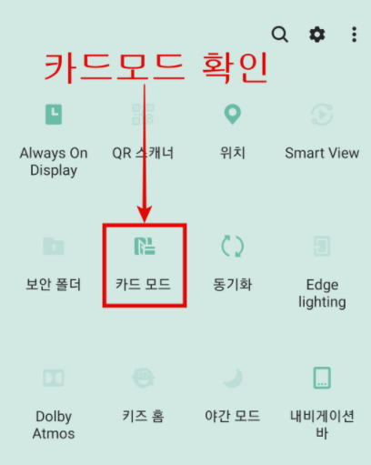 NFC 아이콘을 2번 클릭하면 카드 하단에 카드 모드로 설정이 나오게 됩니다.