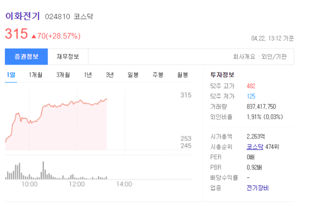 이화전기도 현재 러시아 백신 관련주로 큰 상승을 보이고 있습니다.