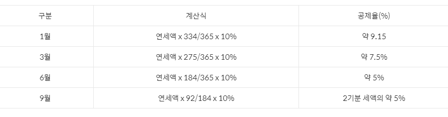 2021년부터는 연납 신청 달별로 개선된 공제액 계산식이