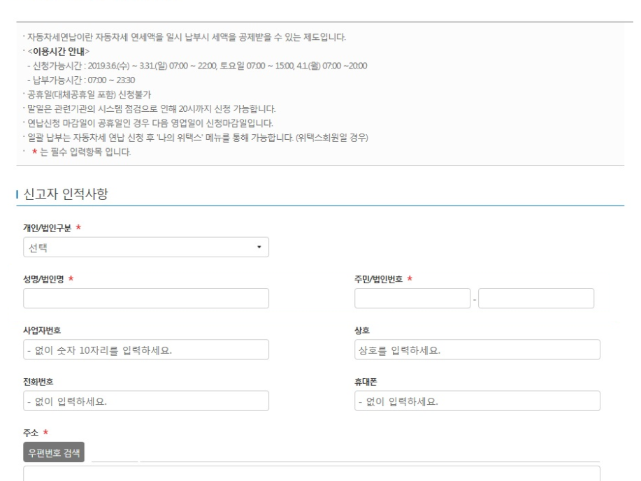 1월 연납 신청 기간에는 이용시간이 연장될 수 있습니다.