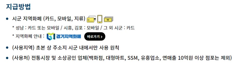 경기도 청년기본소득의 지급 방법은 시군 지역화폐로 지급이 이뤄지고 있으며,