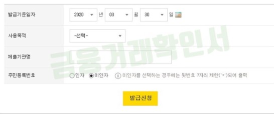 다른 증명서로 가능한 경우에는 발급을 자제하고 금융거래확인서 발급신청을 완료한 후에는
