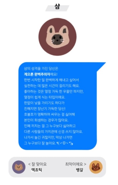 질문이 진행되는 동안 나의 성향과 잘 맞는 답변을 선택하면