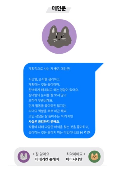 그리고 고양이mbti까지 나오면서 많은 사람들이 관심을 가지고 있습니다.