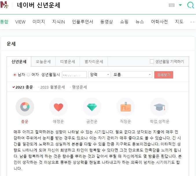 네이버도 자체적인 운세 서비스를 제공하고 있습니다.