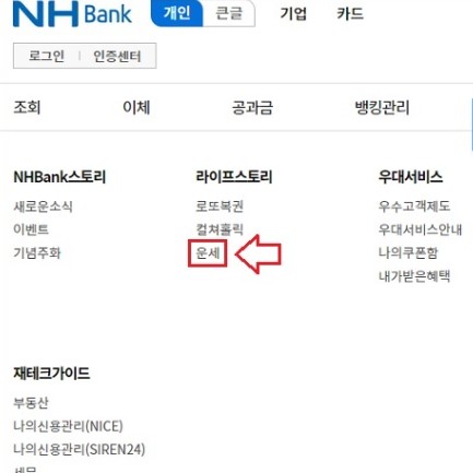 농협에서 운세 확인하는 방법