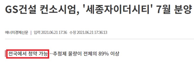 세종시는 전국에서 청약이 가능하기 때문에