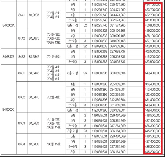 세종 리첸시아 파밀리에 주상복합의 분양가를 보자면,