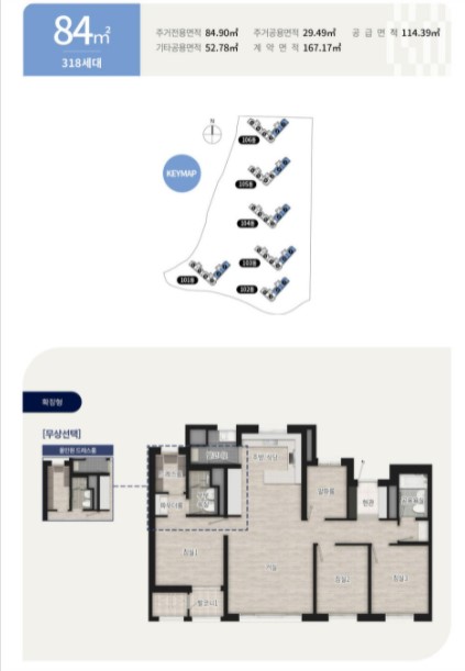 6개동과 넓은 전용면적을 가진 중소형 아파트로