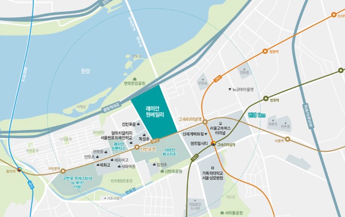 -서울시 서초구 반포동 1-1번지 ( 래미안 원베일리 주소)