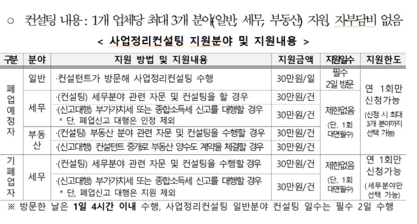 폐업단계에서 사업정리컨설팅 최대 3개분야가 이루어지면