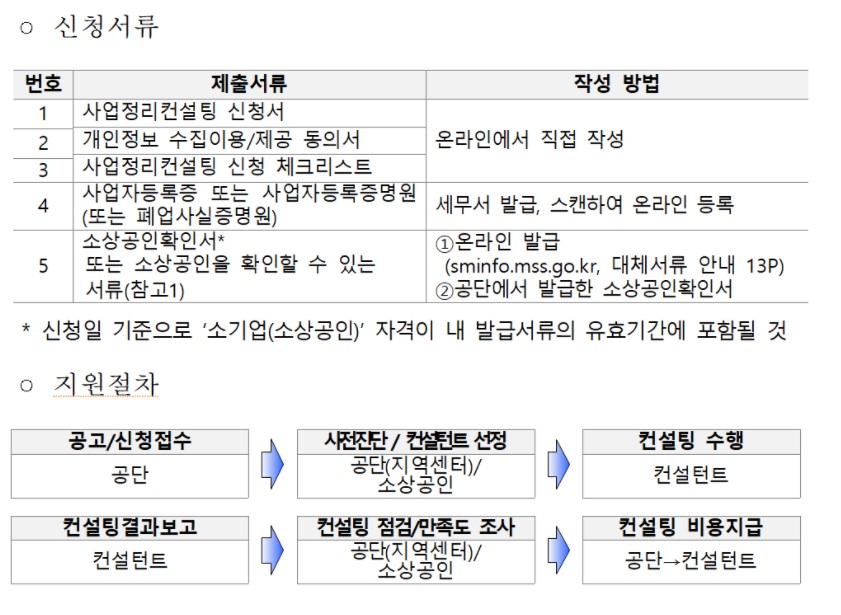 - 폐업 예정 또는 신청일 기준 6개월이내 페업한 소상공인