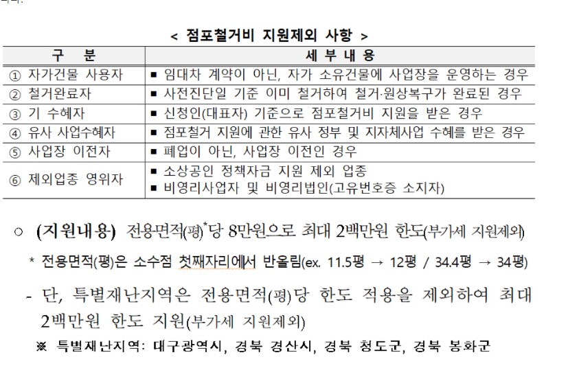 점포철거비는 평당 8만원, 최대 200만원을 지원해주고 있습니다.