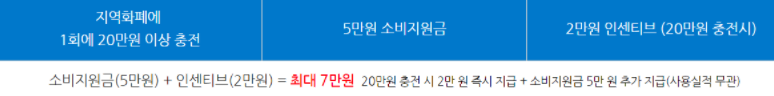상관없이 기본 인센티브 2만원과 5만원의 소비지원금이 추가로 지급됩니다.