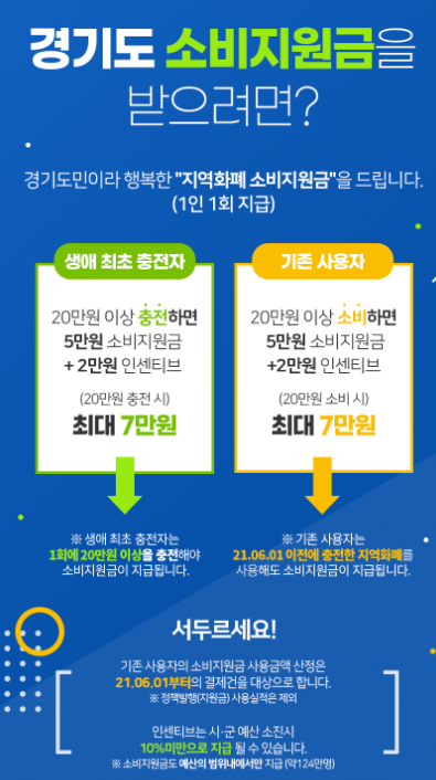 -기존 사용자 : 경기지역화폐 20만원 이상 소비하고 소비지원금을 받게 됩니다.