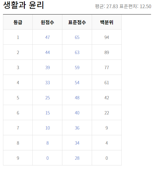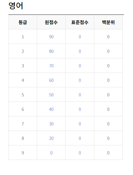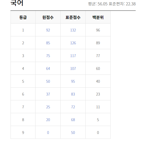 이번 모의고사의 등급컷을 알아보도록 하겠습니다.