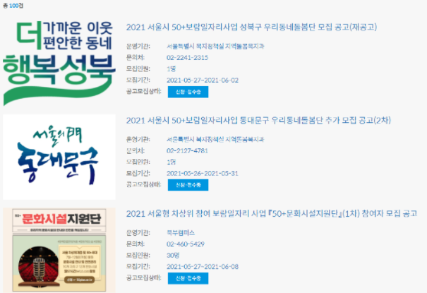 보람 일자리 사업 공고들 확인하기