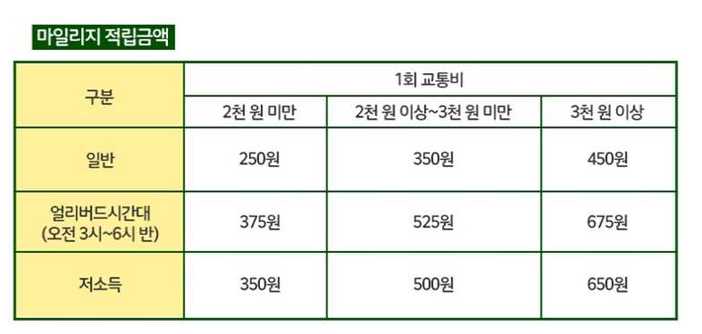 알뜰 교통카드 마일리지 적립금액
