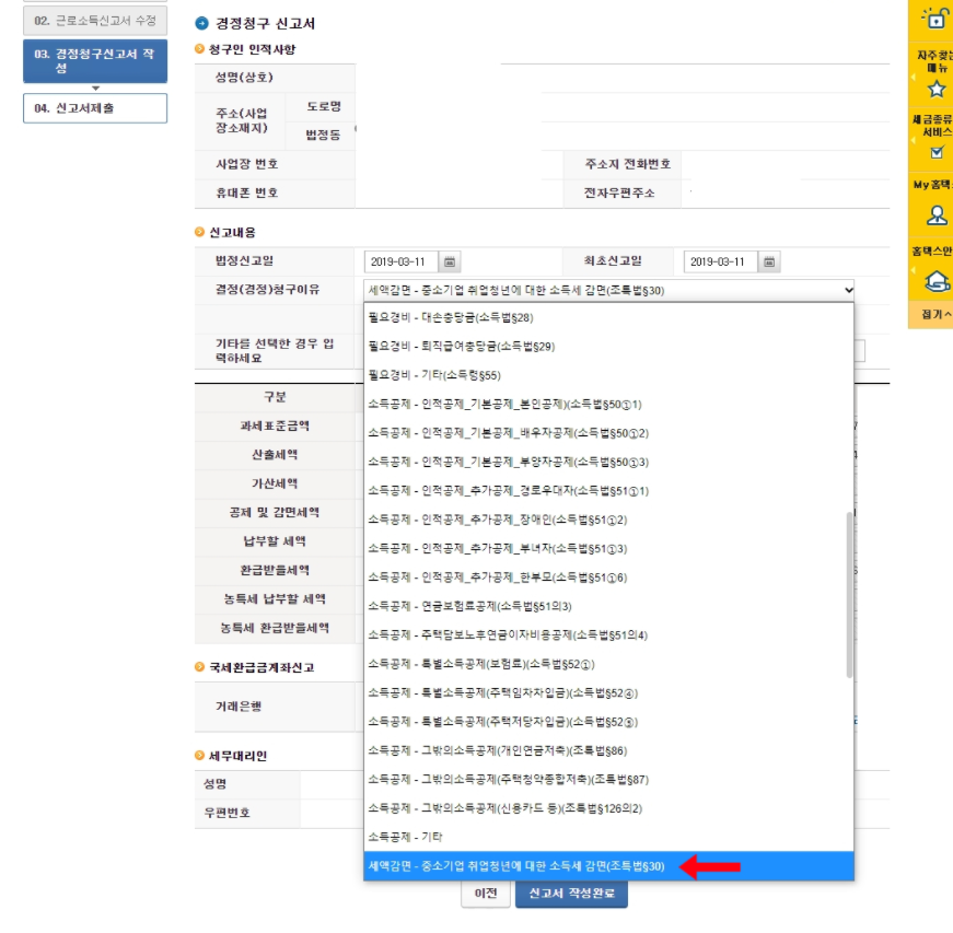 소득세 감면 경정청구 '개인'이 홈택스에서 신청 가능합니다.