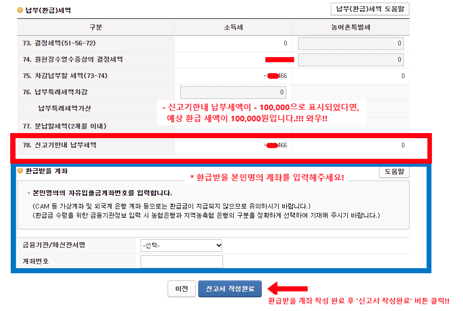 9. 납부(환급) 세액이 마이너스인지 확인하기