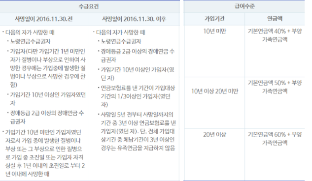 노령연금이나 장애연금을 받던 사람이 사망 시,