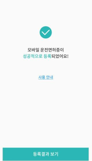 - 인증 후, 모바일 운전면허증 등록이 마무리됩니다.