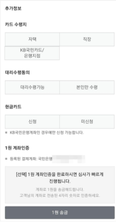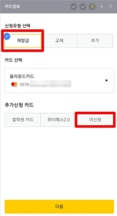 - 추가 신청 카드는 미신청을 클릭합니다.