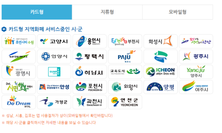 경기지역화폐는 각 경기도의 31개 시/군에 따라서